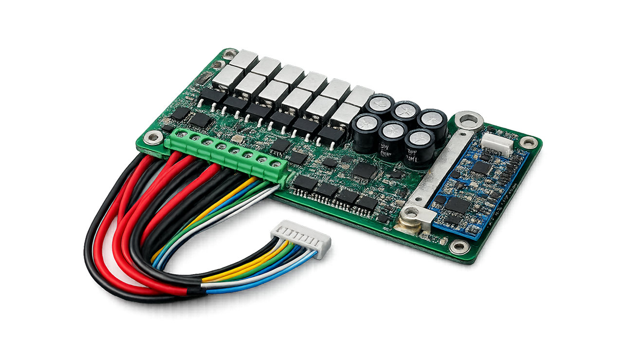Propojení BMS, baterie a zbytku systému. Řešíme vedení, uchycení i ochranu tak, aby celek fungoval spolehlivě dlouhodobě.